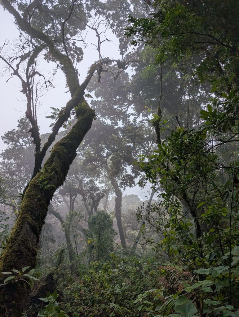 Dimanche, 12 h – Ça y est, vous pénétrez dans les nuages. Forêt moussue et silence ouaté sont désormais vos compagnons.