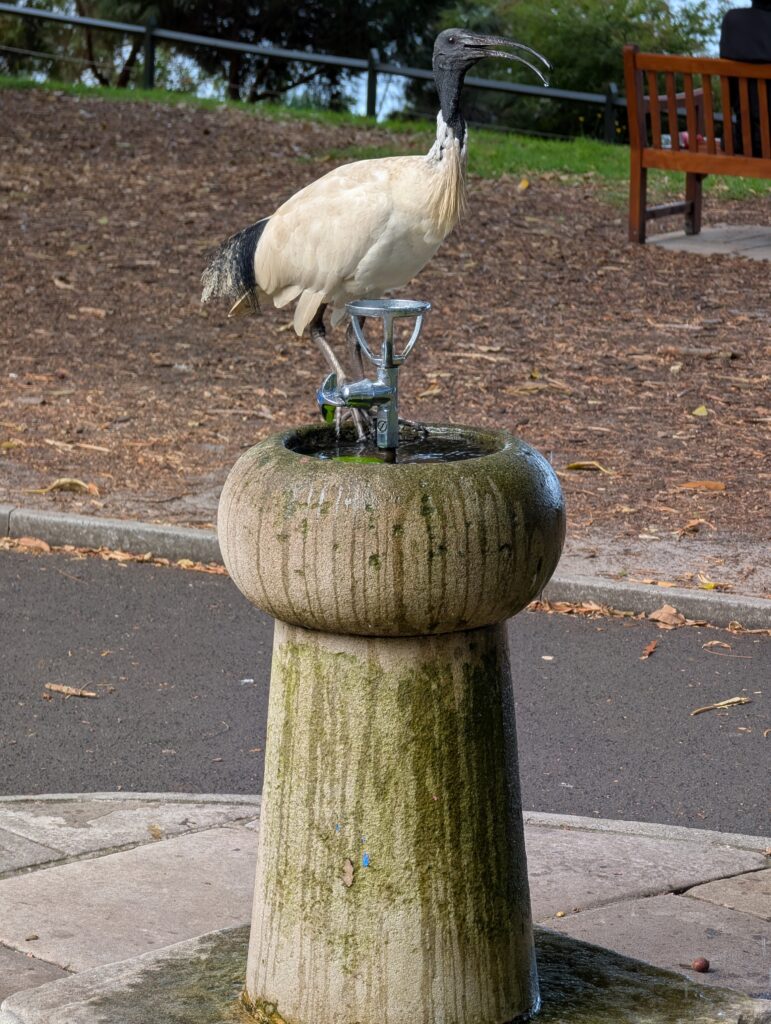Autant le préciser tout de go : ce retour à Oz n’a fait que confirmer mon adoration pour ce pays. Bien sûr tout n’est pas parfait, loin de là : la vie est chère (pas plus qu’en France cela dit) ; les transports en commun sont très efficaces, mais limités géographiquement ; culinairement et culturellement parlant, c’est un peu léger (même si avec la quantité de restaurants asiatiques que l’on trouve ici, on arrive finalement à plutôt bien manger!). Enfin ça c’est surtout histoire de chipoter. Car on pourrait plutôt évoquer l’extrême sympathie des Aussies (si tout du moins on arrive à les comprendre, satané accent…) ; le sentiment de bien-être que l’on ressent en circulant dans des villes cosmopolites et gentrifiées (j’imagine qu’il existe aussi des quartiers moins avenants, mais je ne les ai pas croisés – on est loin des métropoles latino-américaines où l’ambiance pouvait changer radicalement d’une rue à l’autre) ; et bien sûr la nature grandiose, dépaysante et omniprésente. En zone urbaine, les parcs aux arbres immenses sont légions, tandis que la mer n’est jamais bien loin (pas à Alice Springs évidemment). Ibis ou perroquets sirotent tranquillement l’eau des fontaines, sous le regard amusé des touristes. Et dès que l’on sort des agglomérations, le bush est là, dense, sauvage, vivant. On peut s’amuser des nombreux panneaux d’avertissements au départ de chaque sentier, mais ils ne sont pas là sans raison : la civilisation est loin d’être omniprésente sur ce vaste pays-continent, et quitter un sentier peut signifier se perdre pendant des jours, même dans les Blue Mountains, pourtant la proche banlieue de Sydney.