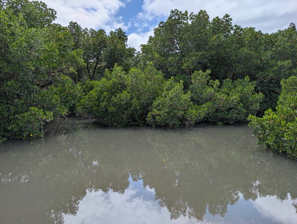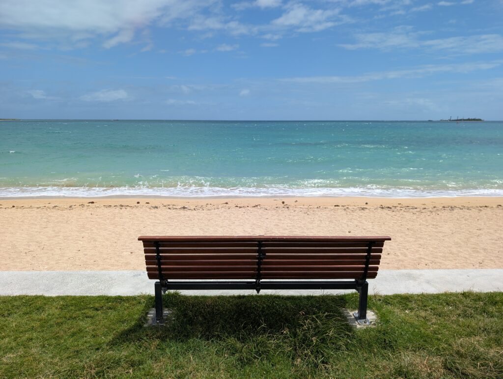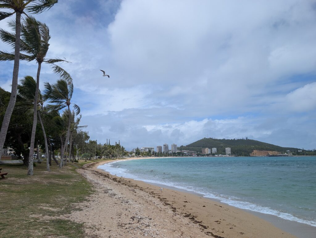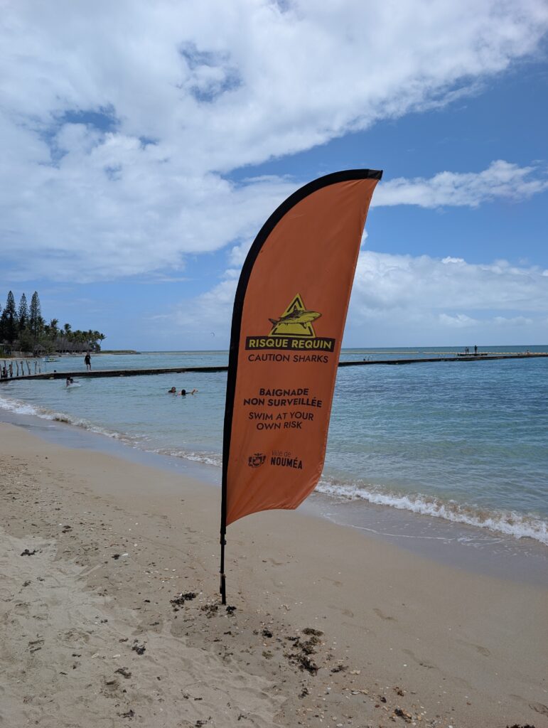 Dépaysant ? Étrange allez-vous peut-être me dire, ça devrait pourtant l’être nettement moins que les Fidji voisines. Peut-être pour qui vient directement de métropole. Mais pour votre serviteur, qui vit dans un dépaysement constant depuis bientôt 3 ans, et qui est habitué à entendre parler anglais, espagnol, ouzbek, japonais ou tagalog, je peux vous garantir que c’est particulièrement dépaysant d’entendre des « Bonjour » à longueur de journée. J’ai d’ailleurs envie de répondre « Bula ! », et je m’embrouille encore un peu dans des salutations françaises de base. Mais ce n’est pas qu’une histoire de langue. Les noms des lieux, les panneaux de circulation, les boîtes aux lettres, les enseignes des magasins, même les maisons, tout rappelle la France. Sauf qu’il fait 30 degrés au mois de janvier, et qu’un lagon azur borde la capitale de la Nouvelle-Calédonie. Avec des panneaux « Attention requins » à intervalles réguliers, malheureusement les attaques sont en hausse ; enfin, elles restent négligeables évidemment, mais une petite psychose s’est néanmoins installée.