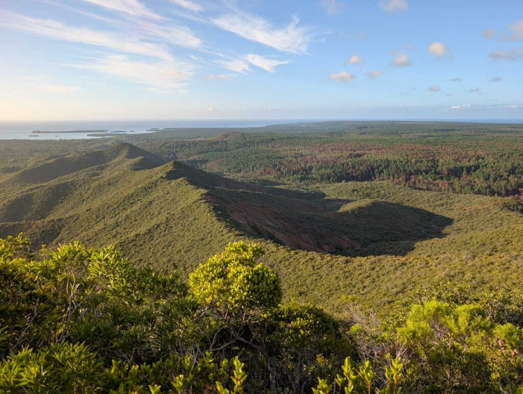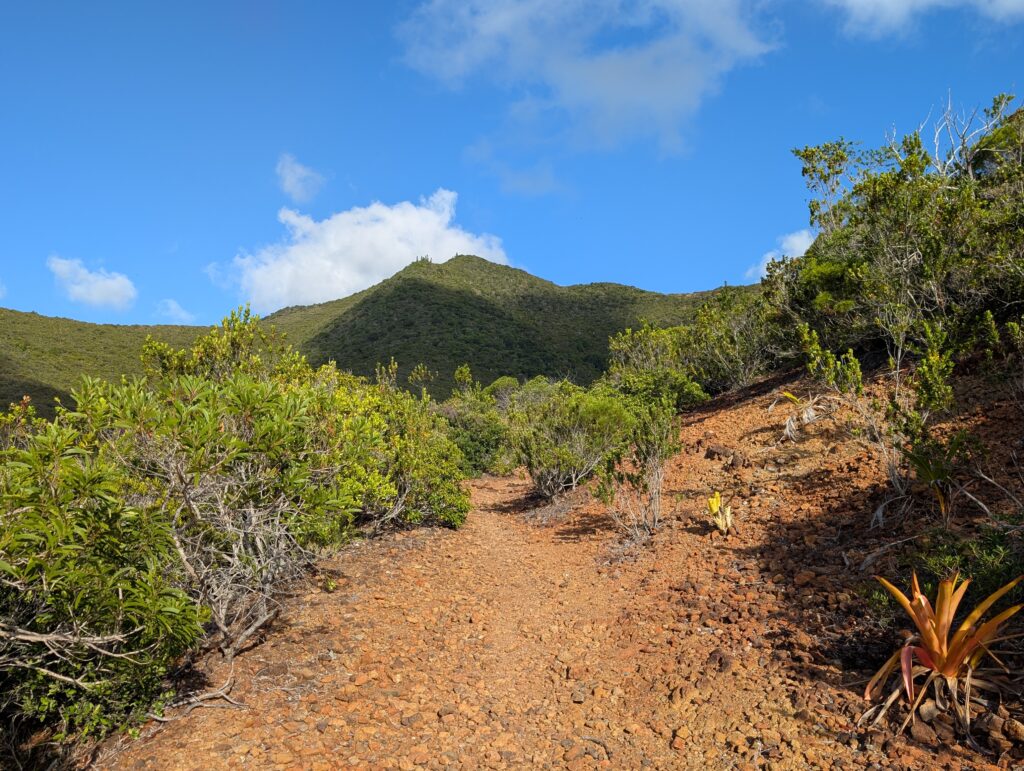 Le premier, vous l’avez vu en photo, c’est le Cagou (ou Kagou), que l’on retrouve sur toutes les cartes postales, t-shirts, timbres et magnets du coin. Nettement plus que dans la nature en l’occurrence, puisqu’à force de fragmentation de son habitat et d’attaques de chiens, il n’en reste guère que 2 000, principalement dans le sud. Son principal souci : il ne vole plus (depuis fort longtemps). Il a perdu cette capacité en l’absence de prédateurs, ce qui lui a permis de se focaliser sur la recherche de nourriture (le Cagou est carnivore). Sauf que manque de pot, les hommes sont arrivés ensuite. Avec leur cortège de rats, chats, chiens, cochons, tous des prédateurs du pauvre oiseau… Il possède quelques caractéristiques amusantes, notamment son cri, qu’il pousse exclusivement juste avant l’aube, et qui ressemble à un aboiement de chien disant « kagou ». Oui oui, d’où son nom. Aucun dimorphisme sexuel, seul la longueur du chant (ou une analyse génétique bien sûr) permet de distinguer le mâle de la femelle. Dernière particularité : on ne lui connaît pas d’espèces apparentées. Enfin, à part éventuellement le Caurale soleil d’Amérique Centrale, mais rien de franchement évident. Non, le Cagou est vraiment unique, et est fièrement devenu le symbole non officiel de ce bout du monde.