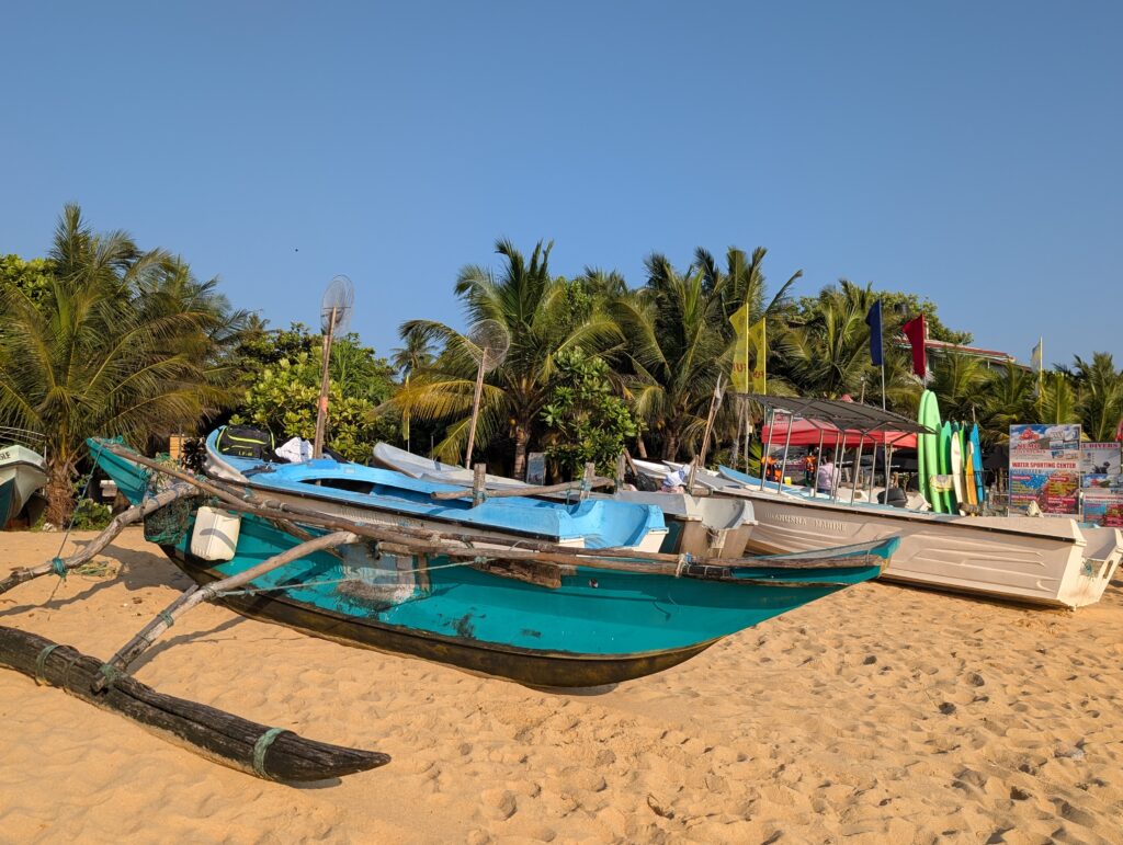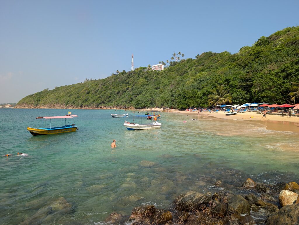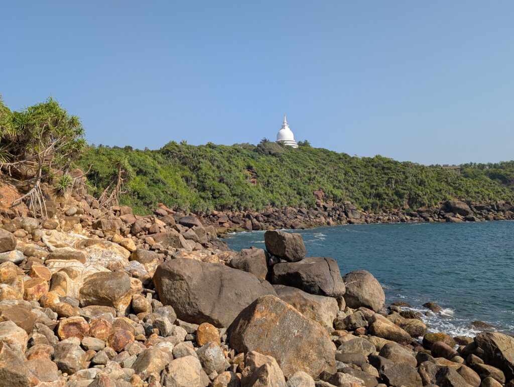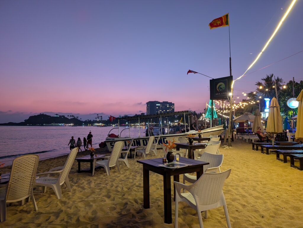 Au niveau des chiffres, c’est relativement similaire : 720 000 visiteurs étrangers en 2022 au Sri Lanka, contre 636 000 aux Fidji. Loin des 80 millions pour la France… Au niveau du ressenti néanmoins, il y a tout un monde. Lorsqu’il y a deux jours, j’ai mis les pieds pour la première fois sur le parfait arc de cercle de la plage d’Unawatuna, j’ai eu un mouvement de recul instinctif. M’étais-je trompé d’adresse ? Le choc était assez rude. J’étais passé en quelques jours de l’idyllique et désertique île des Pins à un amas de chair russe brûlée par le rude soleil tropical (ils ne semblent pas connaître l’usage de la crème solaire, étonnant). Restaurants et bars de plage au coude à coude, vendeurs ambulants de souvenirs, singe en laisse ou serpent autour du bras, sonos puissantes diffusant les derniers hits internationaux, jet-skis rugissants, tuk-tuks pétaradants en arrière-plan, et partout des gens, beaucoup de gens. Il ne faut pas y voir là nécessairement une critique : siroter un mojito (ridiculement bon marché) les pieds dans le sable au coucher du soleil, bercé par les envoûtants chants bouddhistes en provenance de la pagode voisine, c’est tout de même très agréable, et j’ai conscience de faire quelques jaloux. Mais disons que je ne pense pas trouver ici la tranquillité nécessaire à l’écriture de la deuxième moitié de mon roman. Qu’à cela ne tienne, ce n’est qu’une première étape, et le Sri Lanka est nettement plus protéiforme qu’on ne l’imagine. Plus à l’est, les plages se font sauvages, tandis qu’au nord, la relative fraîcheur des montagnes forme un vaste terrain de jeu pour les randonneurs (je n’ai parcouru qu’une douzaine de kilomètres hier, et j’ai dû perdre autant de litres d’eau). En attendant, je me réacclimate progressivement à l’Asie, vivante, vibrante, et populeuse.