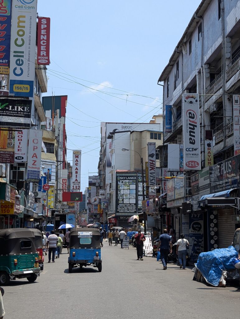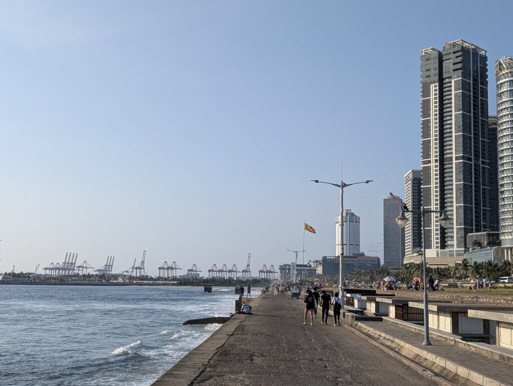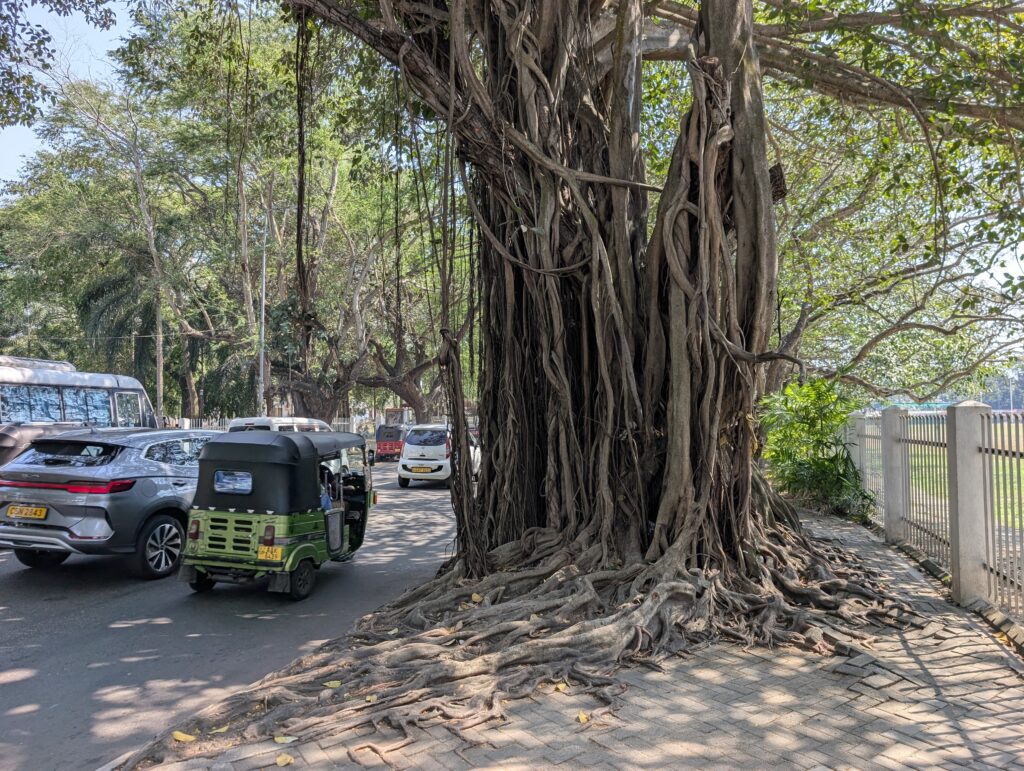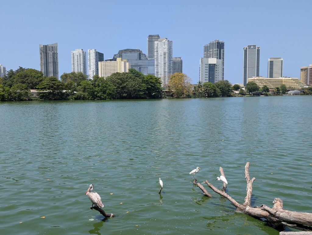 Il s’avère que somme toute, on est bien loin du cauchemar appréhendé. Cela dit, qui a survécu à Delhi devrait aisément s’en sortir à Colombo. Déjà, il y a des trottoirs. Pour le marcheur impénitent que je suis, c’est un gros plus. Alors il faut prendre son courage à deux mains à chaque intersection, mais avec une petite dose de chance, la survie est pratiquement assurée. Bien sûr on ne trouve pas ici de plages paradisiaques, de plantations de thé brumeuses ou de stupas millénaires. Mais on s’amuse de l’impressionnant contraste entre une modernité clinquante et branchée d’une part, avec tours élancées et centres commerciaux géants délicieusement climatisés aux boutiques de luxe désespérément vides. Et la « vraie Colombo » de l’autre, où tuk-tuks et bus colorés antédiluviens vrombissent joyeusement au milieu d’une foule bigarrée ; où à Pettah, de minuscules échoppes, spécialisées qui dans le rétroviseur, qui dans la coque de téléphone, alternent avec des pagodes / temples / églises / mosquées de quartiers ; où corbeaux, hérons, rats et chats errants furètent les nombreux tas d’immondices à peine dissimulés aux regards ; où les pélicans nichent au sommet de gigantesques banians, peignant le noir macadam de blanc ; où les enfants agitent leurs cerfs-volants sur la vaste esplanade de Galle Face au coucher du soleil…