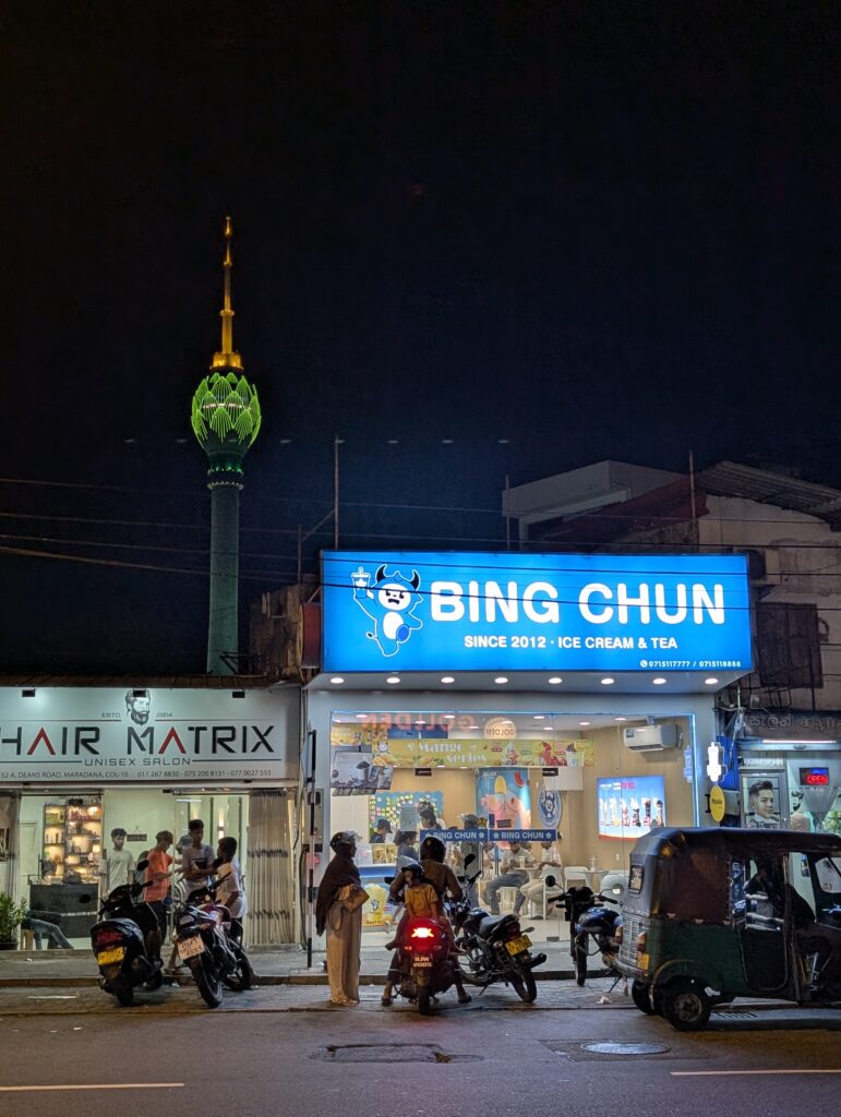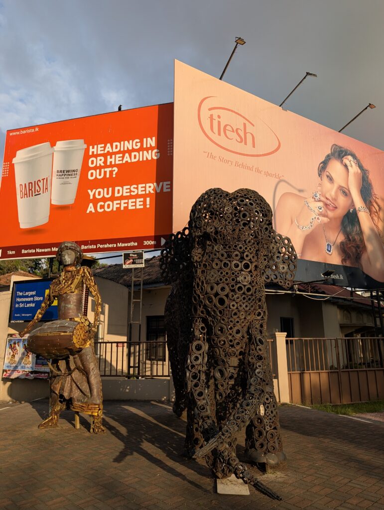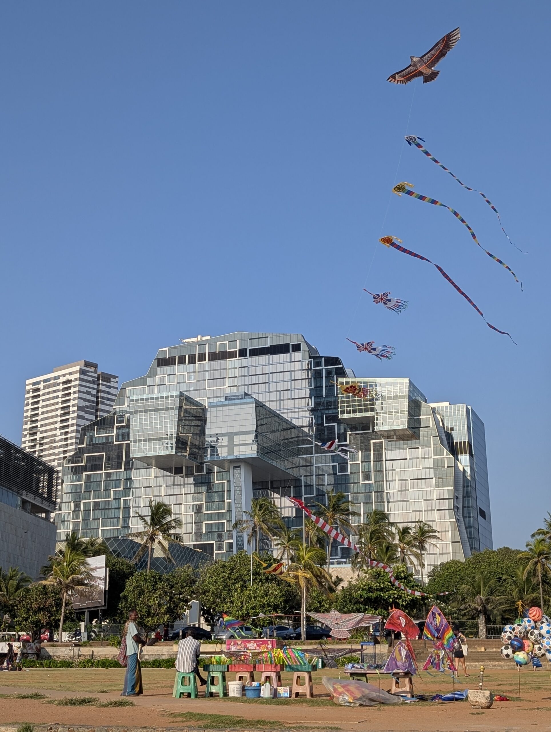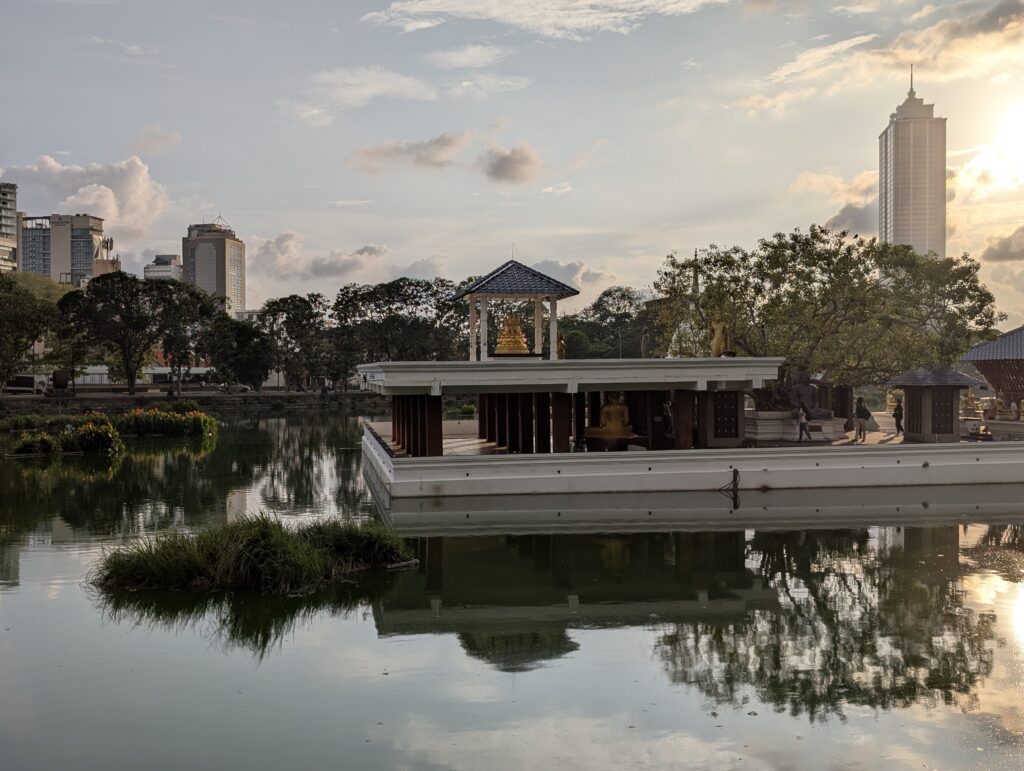 Il s’avère que somme toute, on est bien loin du cauchemar appréhendé. Cela dit, qui a survécu à Delhi devrait aisément s’en sortir à Colombo. Déjà, il y a des trottoirs. Pour le marcheur impénitent que je suis, c’est un gros plus. Alors il faut prendre son courage à deux mains à chaque intersection, mais avec une petite dose de chance, la survie est pratiquement assurée. Bien sûr on ne trouve pas ici de plages paradisiaques, de plantations de thé brumeuses ou de stupas millénaires. Mais on s’amuse de l’impressionnant contraste entre une modernité clinquante et branchée d’une part, avec tours élancées et centres commerciaux géants délicieusement climatisés aux boutiques de luxe désespérément vides. Et la « vraie Colombo » de l’autre, où tuk-tuks et bus colorés antédiluviens vrombissent joyeusement au milieu d’une foule bigarrée ; où à Pettah, de minuscules échoppes, spécialisées qui dans le rétroviseur, qui dans la coque de téléphone, alternent avec des pagodes / temples / églises / mosquées de quartiers ; où corbeaux, hérons, rats et chats errants furètent les nombreux tas d’immondices à peine dissimulés aux regards ; où les pélicans nichent au sommet de gigantesques banians, peignant le noir macadam de blanc ; où les enfants agitent leurs cerfs-volants sur la vaste esplanade de Galle Face au coucher du soleil…
